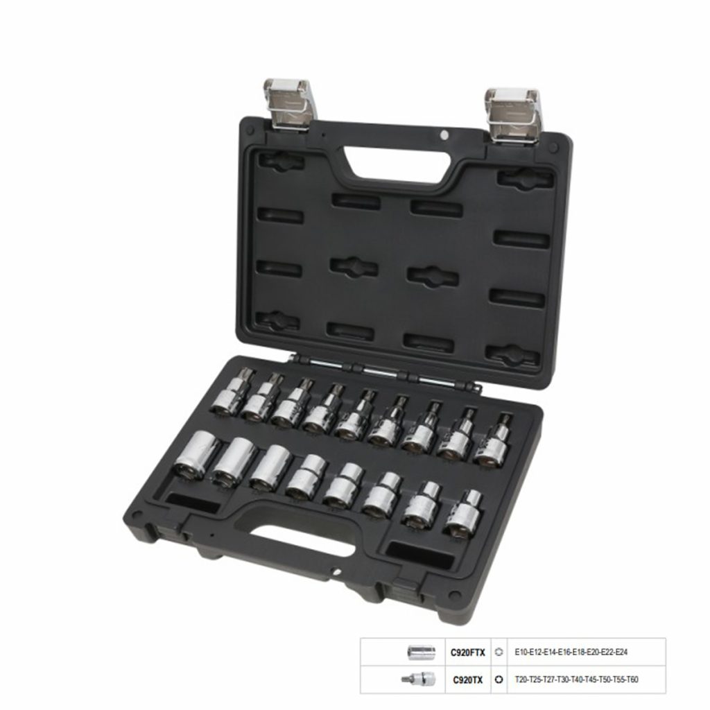 - Vasos Torx®(R) de Alta Calidad: El conjunto incluye una variedad de vasos Torx®(R) que van desde E10 hasta E60, asegurando que tengas la herramienta adecuada para cada tarea.
